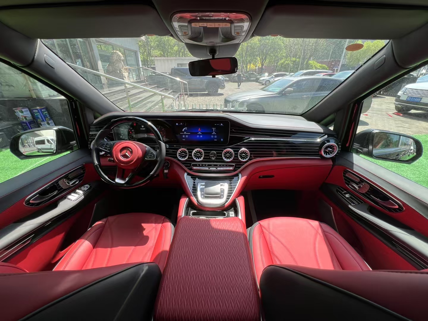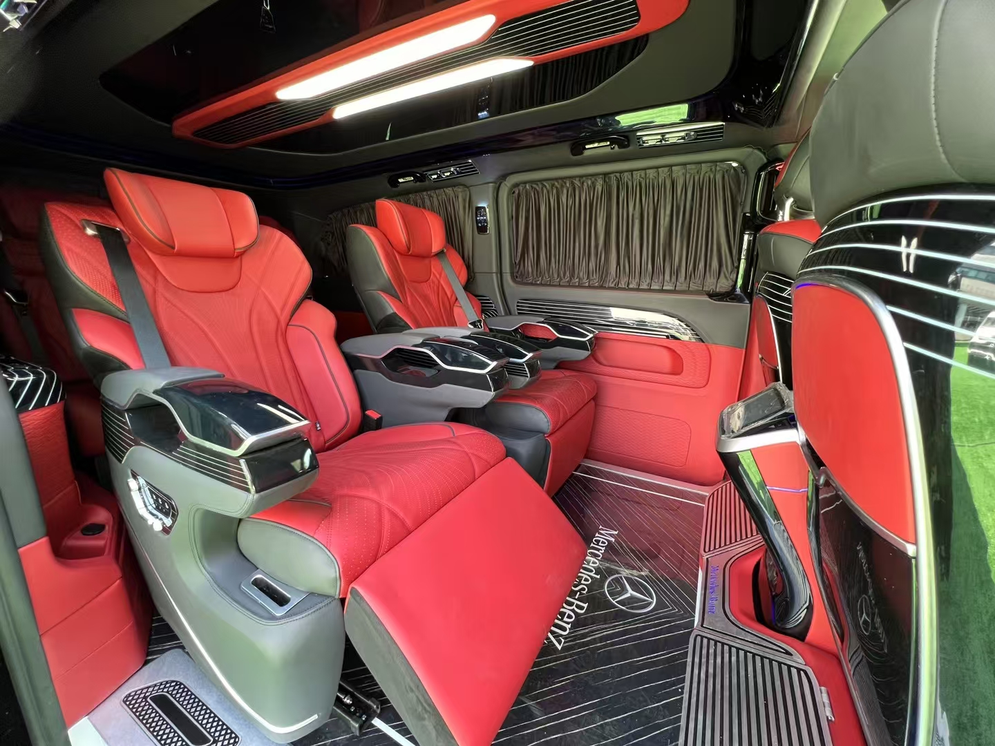 Overall dimensions: 5370mm (length) × 1928mm (width) × 2080mm (height). Inheriting the Mercedes-Benz family design language, the new V-Class features a bold yet minimalist aesthetic with contemporary flair. Its spacious and comfortable interior offers flexible seating configurations. The hidden executive seat beneath the TV unfolds electrically at the touch of a button, fully meeting diverse business travel needs. It stands as the finest investment choice for China's business elite, empowering their journey of excellence with “outstanding yet effortless” performance.