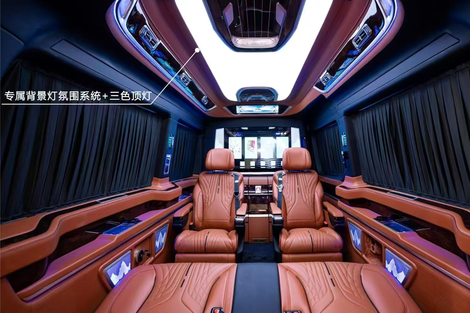 The LCD monitor allows you to set the desired atmosphere. Watching a TV show or movie for entertainment, a showing a presentation or business analysis — everything is in your hands. By connecting your device to the screen, you easily output the necessary content for easy viewing to all passengers. The clock set under the TV-panel will help you not lose track of time along the way.