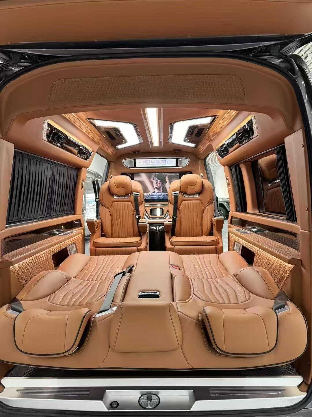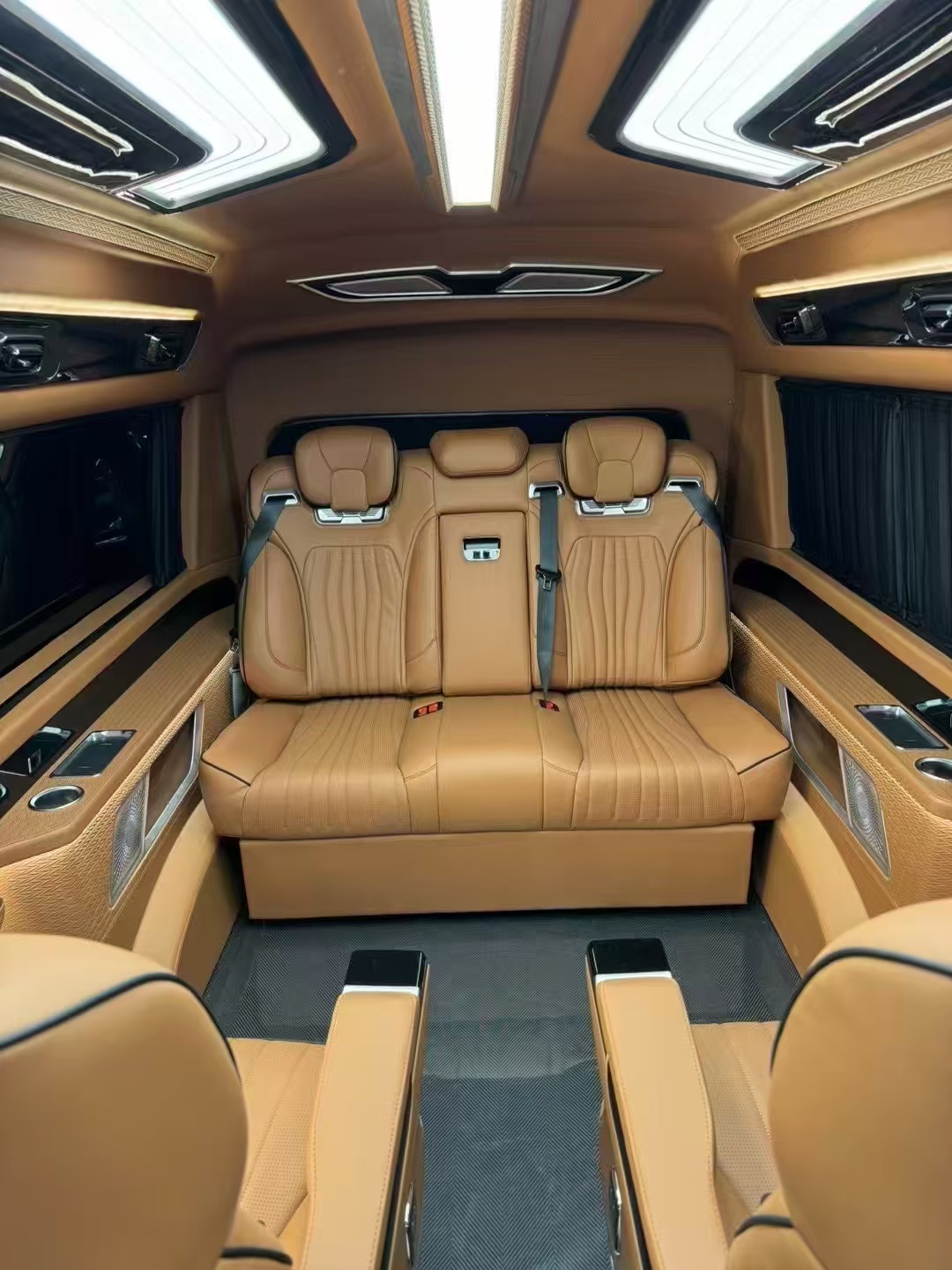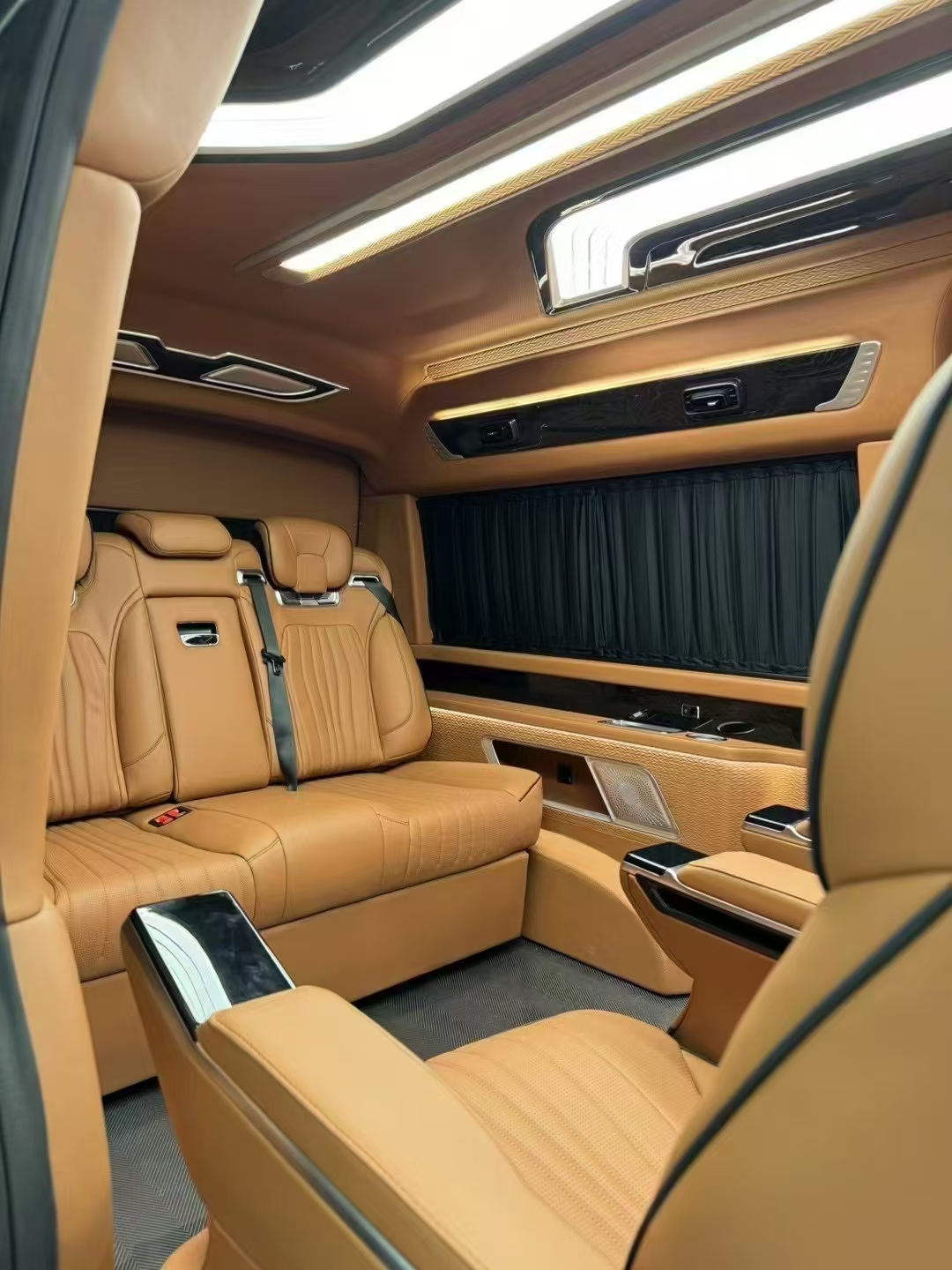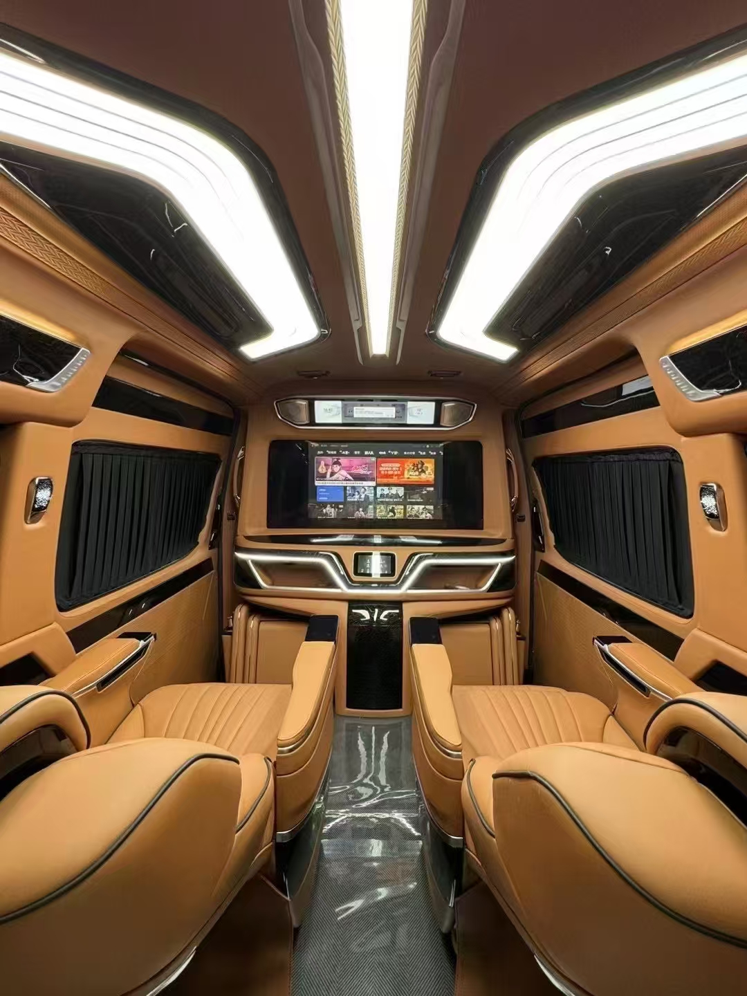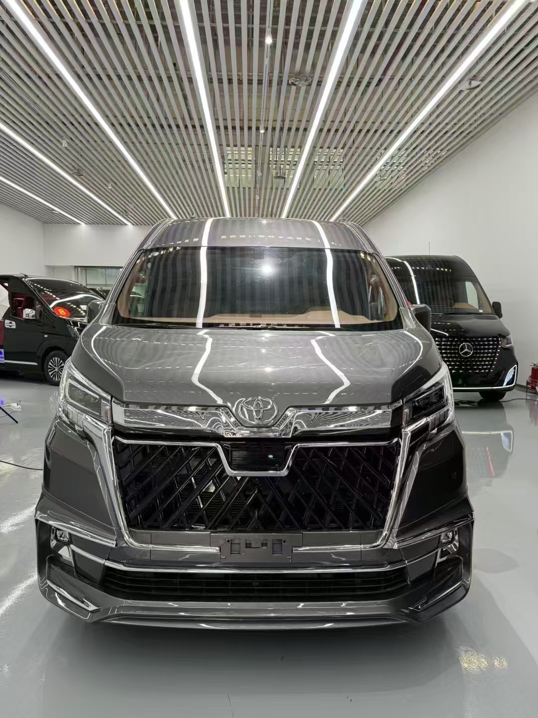 Regarding modified versions, the H300 series' long-hood design offers the advantage of front-engine placement. Its body is longer than the Alphard, reaching 5.9 meters (within blue license plate limits), with a wheelbase of 3.86 meters. Consequently, many HiAce H300 units are purchased by modification shops for conversion into 6- or 4-seat “business vehicles” sold at premium prices. Their interior finishes resemble those of the Mercedes-Benz V-Class.